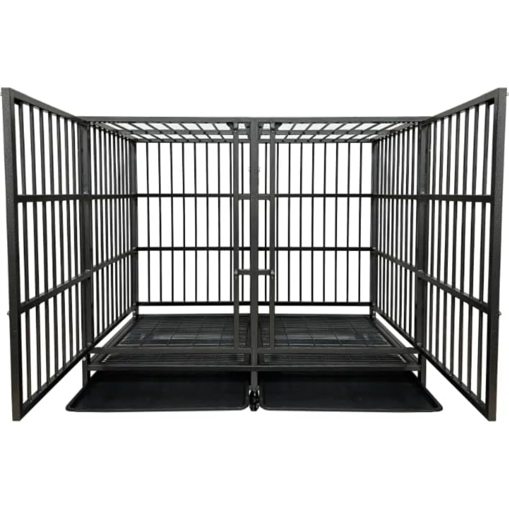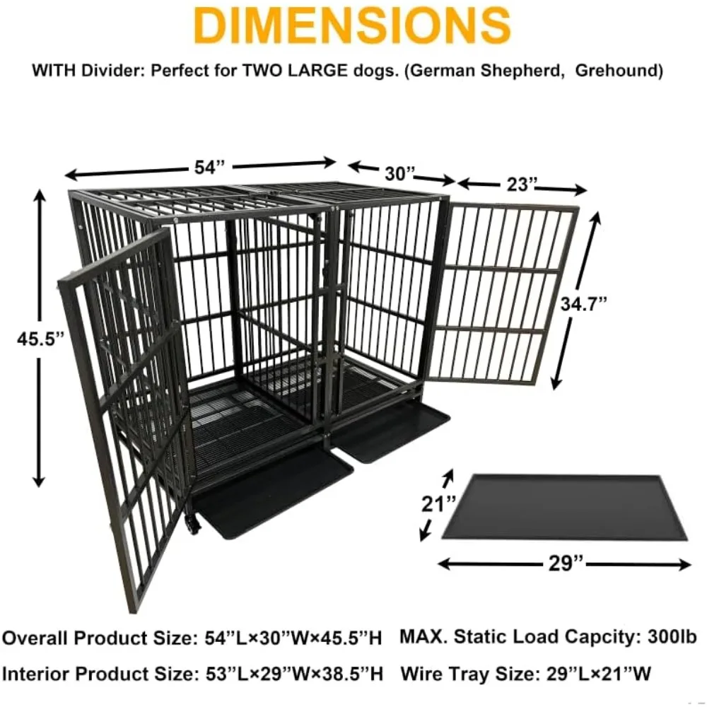 54 Heavy Duty Indestructible and Escape-Proof Dog Crate Cage Kennel with Divider for 2 Large Dogs, High Anxiety Dog Crate with R
